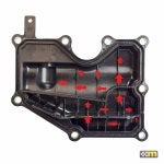 In actuality though, there is no gaping space on the stock piece. There is the single baffle and then all the air must flow through a port and back through another chamber before reaching the PCV valve.